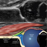 Ultrasound is the modality of choice for imaging assessment of DDH in the infant (<6 months) prior to ossification of the proximal femoral epiphysis. A lineair, high frequency probe is used and the focus is set at the acetabular edge. Once there is a significant ossification then x-ray examination is required.