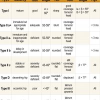 The Graf classification of hip dysplasia is mainly based on the morphology of the iliac bone, where we look at the shape of the acetabulum, the bony and cartilaginous acetabular rim, labrum and position of the femoral head, and also look at the coverage of the femoral head by the cartilage of the acetabulum and the labrum.