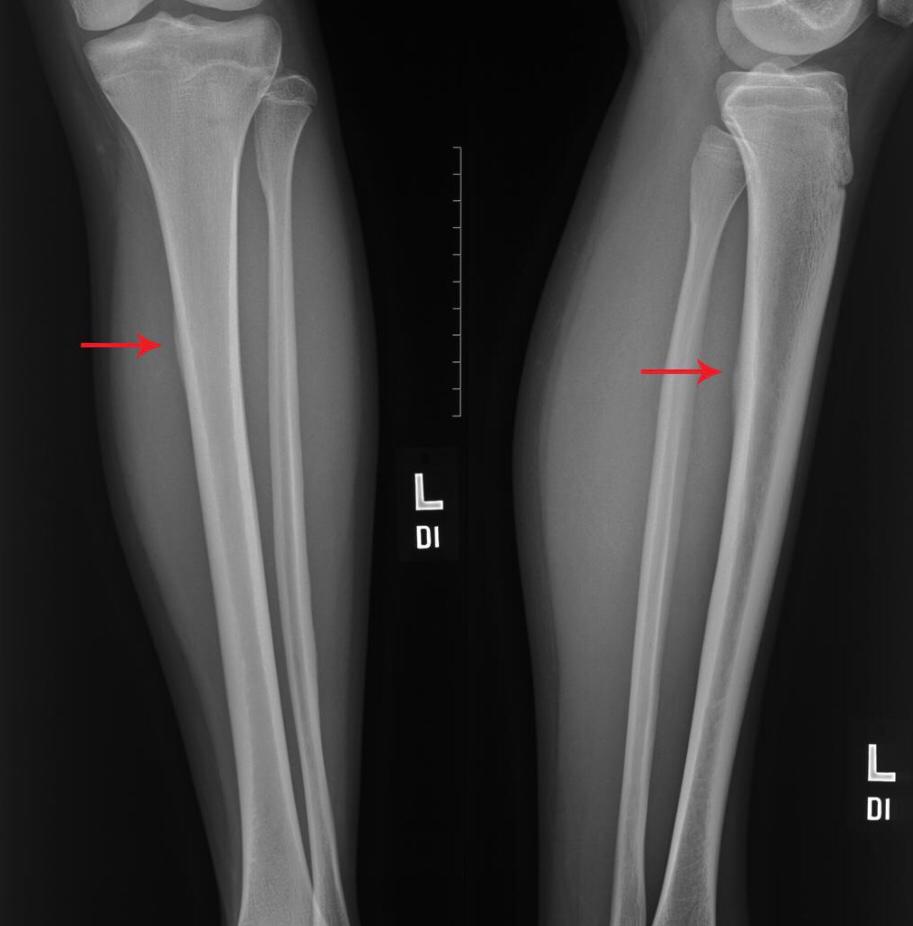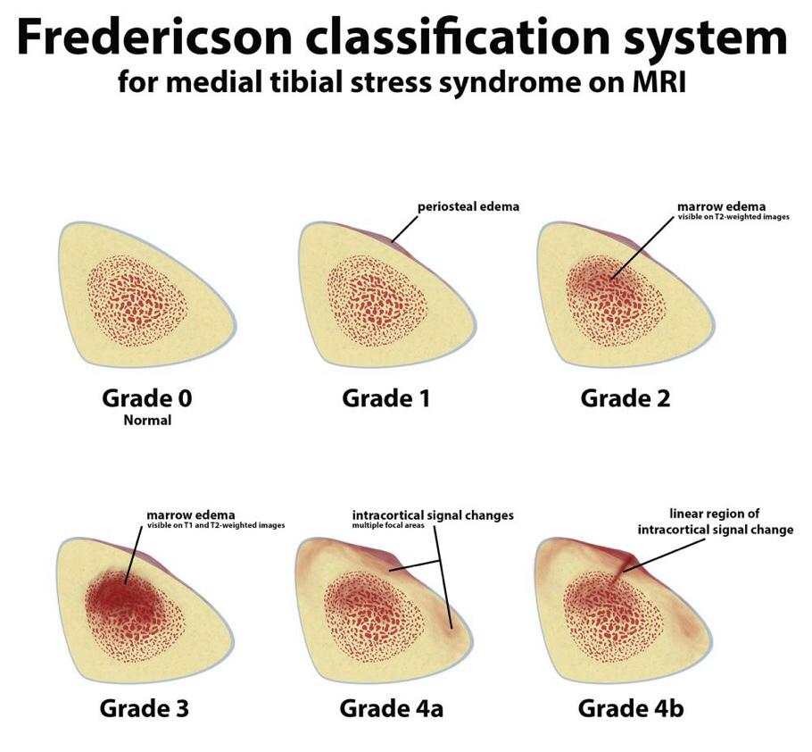 Medial tibial stress syndrome (MTSS), also known as shin splints, describes a spectrum of stress injury that occurs at the medial tibia. This term is often used to indicate any type of tibial stress injury or the earlier manifestations of a tibial stress lesion before a fracture component can be identified. It is considered a low risk stress fracture.