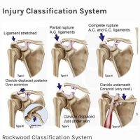 - Type VI: AC tear/CC tear, clavicle located beneath acromion or coracoid; very rare.